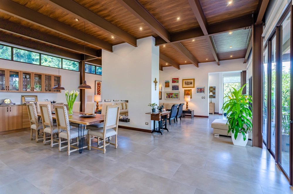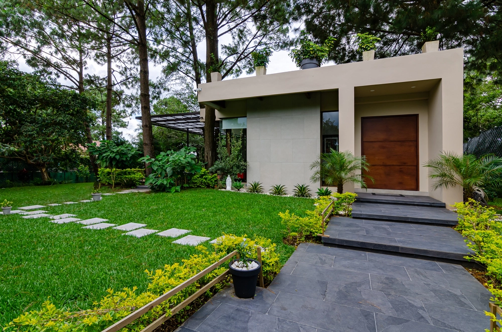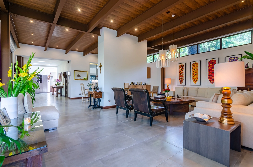 Porcelanatos que tienen la apariencia exacta a una piedra natural, siendo el complemento ideal para mezclarse con la vegetación de los exteriores. En esta residencia privada se incluyó nuestro porcelanato de origen español tipo piedra Slate negro 45x90cm.